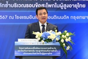 นายธวัชชัย ชีวานนท์ ประธานผู้บริหาร Product & Business Solutions รักษาการผู้บริหารสายงานบริหารจัดการเงินเพื่อธุรกิจและสายงานเทคโนโลยี ธนาคารกรุงไทยฯ กล่าวว่า ในฐานะเป็นธนาคารพาณิชย์ของรัฐ มุ่งมั่นในการนำเทคโนโลยีและนวัตกรรมมาพัฒนาบริการด้านสุขภาพและการรักษาพยาบาล ซึ่งเป็น 1 ใน 5 Ecosystem ที่ ธนาคารกรุงไทยให้ความสำคัญเสมอมา เพื่อส่งเสริมการมีคุณภาพชีวิตที่ดีของคนไทย ผ่านแพลตฟอร์มดิจิทัลที่เชื่อมโยงข้อมูลและบริการต่าง ๆ โดยล่าสุดได้ร่วมขับเคลื่อนโครงการพัฒนานวัตกรรมการจัดการด้านการดูแล ติดตามและเฝ้าระวังทางสุขภาพของผู้สูงอายุที่มีความเสี่ยงต่อการพลัดตกหกล้มและกระดูกหัก รวมถึงการหักซ้ำ ซึ่งเป็นการรวมพลังขององค์กรชั้นนำจากหลายภาคส่วน ทั้งจากวงการแพทย์ หน่วยงานภาครัฐ และสถาบันการเงิน เพื่อสร้างสรรค์นวัตกรรมที่เป็นประโยชน์ต่อสังคมไทยโดยรวม โดยเฉพาะในเรื่องสุขภาพของผู้สูงอายุ ซึ่งเป็นกลุ่มเสี่ยงอันดับต้นๆ ที่ได้รับการบาดเจ็บจากการพลัดตกหกล้มและกระดูกหัก การพัฒนาระบบการเฝ้าระวังและป้องกันได้อย่างรวดเร็วและมีประสิทธิภาพมากยิ่งขึ้น จะช่วยเสริมสร้างความแข็งแกร่งของระบบสุขภาพในประเทศไทย ยกระดับมาตรฐานการดูแลสุขภาพ ช่วยให้ผู้สูงอายุมีคุณภาพชีวิตที่ดีขึ้นและปลอดภัยมากยิ่งขึ้น ตามวิสัยทัศน์ กรุงไทย เคียงข้างไทย สู่ความยั่งยืน