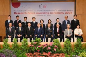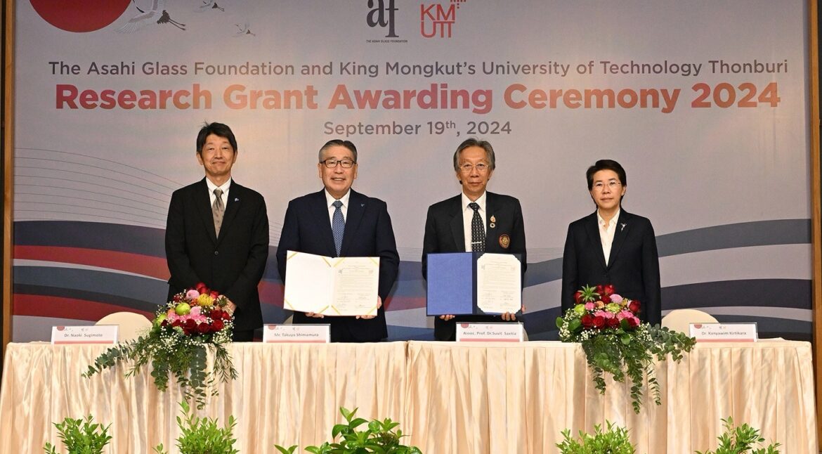 มหาวิทยาลัยเทคโนโลยีพระจอมเกล้าธนบุรี (มจธ.) ร่วมกับมูลนิธิกระจกอาซาฮี (The Asahi Glass Foundation – AF) ประเทศญี่ปุ่น จัดพิธีมอบทุนวิจัยประจำปี 2567 (Research Grant Award Ceremony 2024) ขึ้นเมื่อวันที่ 19 ก.ย.ที่ผ่านมา โดยมี นายทาคุยะ ชิมามุระ (Mr. Takuya Shimamura) ประธานมูลนิธิกระจกอาซาฮี และประธานเจ้าหน้าที่บริหารบริษัท AGC Inc. กล่าวแสดงความยินดีกับนักวิจัยผู้ได้รับทุน และ รศ. ดร.สุวิทย์ แซ่เตีย อธิการบดี มจธ. กล่าวต้อนรับคณะผู้บริหารและผู้เข้าร่วมงาน จากนั้นร่วมมอบทุนให้กับนักวิจัยของ มจธ. จำนวน 6 ท่าน เพื่อสนับสนุนการสร้างองค์ความรู้ใหม่ที่อาจนำไปสู่แนวทางแก้ไขปัญหาทั้งทางด้านอุตสาหกรรม เศรษฐกิจ และสังคม