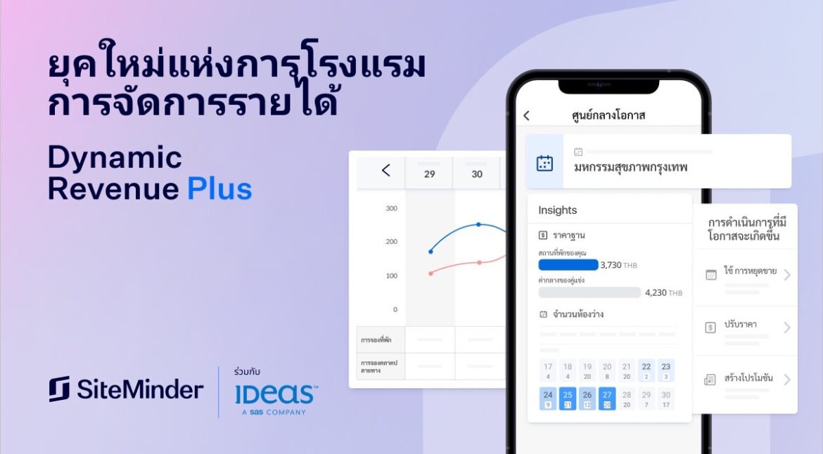 SiteMinder ผู้นำแพลตฟอร์มระดับโลกที่จะเข้ามาปลดล็อกศักยภาพในการสร้างรายได้เต็มรูปแบบให้กับโรงแรม เดินหน้าเข้าสู่ยุคใหม่ของการจัดการรายได้สำหรับโรงแรม เปิดตัว ‘Dynamic Revenue Plus’ โซลูชันที่สามารถเข้าถึงข้อมูลเชิงลึกของตลาดได้แบบเรียลไทม์ ทำให้สามารถดำเนินการจัดการทั้งห้องพักที่ว่างให้บริการ ราคา หรือกลยุทธ์ช่องทางการจัดจำหน่ายห้องพักได้ในทันที ซึ่งนับเป็นการพัฒนาที่แตกต่างจากระบบการจัดการรายได้แบบเดิมที่สามารถเข้าถึงโรงแรมได้อย่างจำกัด โดย Dynamic Revenue Plus ทำให้โรงแรมทุกขนาดสามารถจัดการรายได้ได้ตามต้องการผ่านระบบที่ออกแบบสำหรับใช้งานบนมือถือโดยเฉพาะ