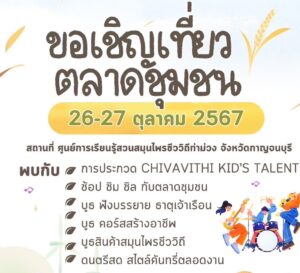 นางอรประภา กล่าวเพิ่มเติมว่า งานตลาดนัดชุมชนครั้งนี้จะมีการจำหน่ายสินค้าชุมชน รวมถึงการสอนทักษะอาชีพในรูปแบบคอร์สต่างๆ อาทิ เบเกอรี่ ขนมไทย และการสานตะกร้า นอกจากนี้ ยังมีกิจกรรมพิเศษมากมาย เช่น การประกวดความสามารถของเยาวชนในพื้นที่ (Chivavithi Kid’s Talent) เพื่อชิงทุนการศึกษา การบรรยายเรื่องตรวจธาตุเจ้าเรือน และการสาธิตการทำอาหารเพื่อสุขภาพ พร้อมบริการความงามจากผลิตภัณฑ์สมุนไพรของบริษัท เช่น นวดไทย บำรุงหน้า และการแช่เท้าด้วยสมุนไพร อีกทั้งผู้ร่วมงานยังมีโอกาสลุ้นรับรางวัลจากกิจกรรมหมุนวงล้อนำโชค เช่น ที่พักฟรีที่ศูนย์การเรียนรู้ฯ และผลิตภัณฑ์เวชสำอางชีววิถีที่จำหน่ายในราคาพิเศษเฉพาะในงานนี้