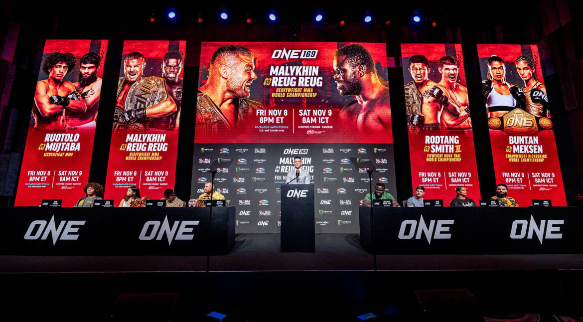 เมื่อวันที่ 6 พ.ย. ที่โรงแรมดับเบิ้ลยู กรุงเทพ วัน แชมเปียนชิพ (ONE) องค์กรศิลปะการต่อสู้ที่ยิ่งใหญ่ที่สุดในโลก แถลงข่าว ศึก ONE 169: อนาโตลี vs รุง รุงที่จะจัดขึ้น ณ สนามมวยเวทีลุมพินี ในช่วงไพรม์ไทม์อเมริกา ซึ่งตรงกับเวลา 08.00 น. วันเสาร์ที่ 9 ตามเวลาไทย จัดหนักชูโรงด้วย 3 คู่ไฮไลต์ชิงเข็มขัดสุดเดือด โดยมีเหล่านักกีฬาระดับซูเปอร์สตาร์และดาวรุ่งร่วมแข่งขัน พร้อมด้วยทัพสื่อมวลชนหลายร้อยสำนัก อินฟลูเอนเซอร์ และแฟนคลับเข้าร่วมงานมากมาย