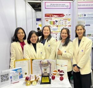ผลงาน RP jelly drink less sweet and refreshing drink for better health โดย ศูนย์ความหลากหลายทางชีวภาพ และศูนย์เชี่ยวชาญนวัตกรรมอาหารสุขภาพ เป็นผลิตภัณฑ์เครื่องดื่มเจลลี่ที่มีส่วนผสมของสารสกัดกระเจี๊ยบแดงและผงเสาวรสกับน้ำผักผลไม้รวม ด้วยกระบวนการ High pressure (HPP) มีองค์ประกอบของสารประกอบโพลิฟีนอล เบต้าแคโรทีน และแอนโทไซยานิน ที่มีฤทธิ์ต้านอนุมูลอิสระ มีแกมม่า โทโคเฟรอล (Gamma Tocopherol) ซึ่งเป็นวิตามินอีที่พบได้ตามธรรมชาติ ทำหน้าที่ต้านการอักเสบ ผลิตภัณฑ์ให้พลังงานต่ำ (low calories, 50 Kcal) ผลการทดลองในระดับคลินิกกับอาสาสมัครคนไทย พบว่าการบริโภควันละ 2 ถุง (น้ำหนักสุทธิ 150 กรัม) เป็นระยะเวลา 2 เดือน มีประสิทธิภาพในการลดค่าไขมันเลว (LDL) และไตรกลีเซอไรด์ (TG) โดยได้รับ 2 รางวัล คือ