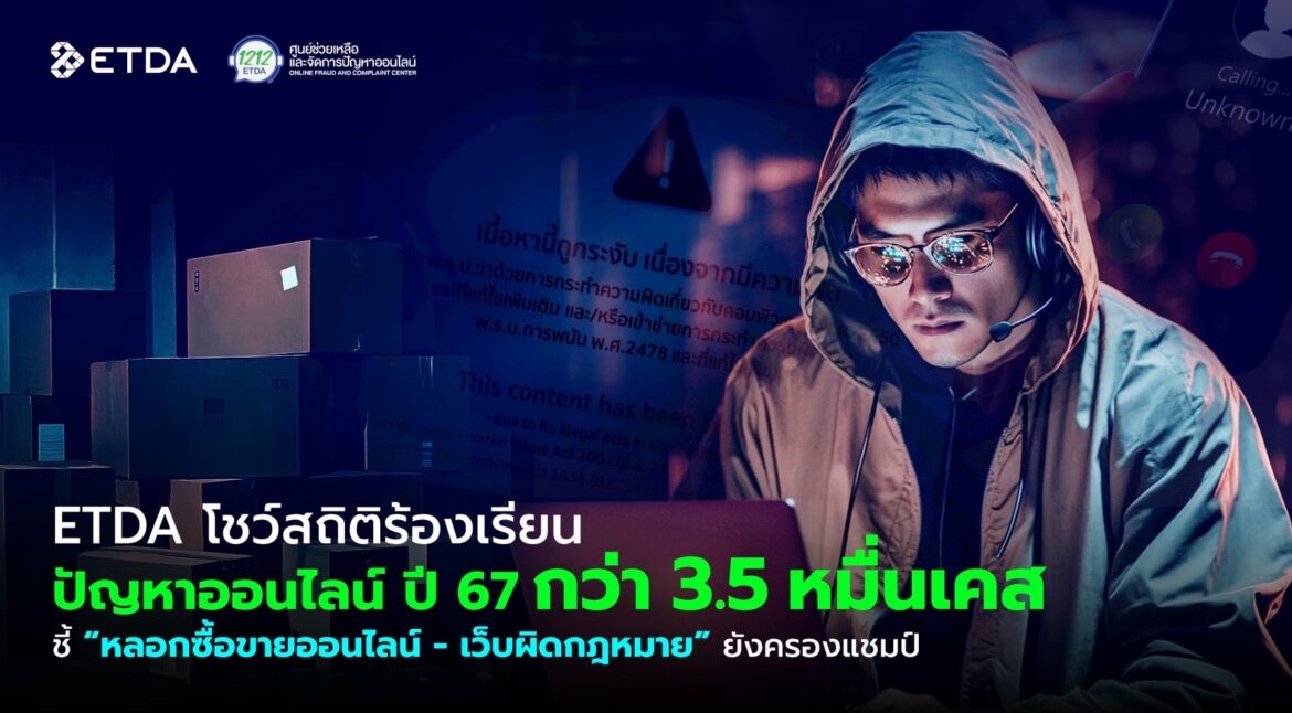ETDA โชว์สถิติร้องเรียนปัญญาออนไลน์ ปี 67 กว่า 3.5 หมื่นเคส ชี้ “หลอกซื้อขายออนไลน์ – เว็บผิดกฎหมาย” ยังครองแชมป์ เร่งกลไก ‘กฎหมาย DPS-สร้างเกราะคุ้มกัน’ ดันคนไทย ทันภัยไออนไลน์
