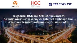 Telehouse Thailand ผู้นำด้านการให้บริการดาต้าเซ็นเตอร์ระดับโลก ร่วมกับ HGC Global Communications Limited (HGC) ผู้ให้บริการเครือข่ายอินเทอร์เน็ตและไอซีทีที่มีเครือข่ายครอบคลุมทั่วโลก และ Amsterdam Internet Exchange หรือ AMS-IX ผู้ให้บริการศูนย์แลกเปลี่ยนอินเทอร์เน็ต ชั้นนำของโลกจากยุโรป ได้ประกาศความร่วมมือเชิงกลยุทธ์ เพื่อยกระดับโครงสร้างพื้นฐานและการเชื่อมต่อระหว่างกรุงเทพฯ และลอนดอน โดยมีเป้าหมายเพื่อเพิ่มประสิทธิภาพการแลกเปลี่ยนข้อมูลระหว่างเอเชียและยุโรป ยกระดับการให้บริการการเชื่อมต่อระยะไกล รวมถึงการแลกเปลี่ยนทราฟฟิกข้ามทวีปอีกด้วย