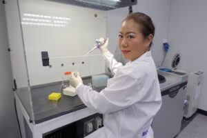 รศ.ดร.ศศิมนัส กล่าวอีกว่า โครงการที่ได้รับทุนจาก บพข. เป็นการวิจัยในการขยายกำลังการผลิตวัคซีนจากระดับห้องปฏิบัติการมาสู่ระดับ pilot scale โดยมีการผลิตใช้ถังหมักขนาด 5 ลิตร 10 ลิตร และ 50 ลิตร ซึ่งเป็นการประเมินกระบวนการและศักยภาพในการขยายกำลังการผลิตวัคซีน และประสิทธิภาพของวัคซีนในระดับฟาร์มเลี้ยง โดยติดตามได้จาก ระดับภูมิคุ้มกัน และอัตรารอดของปลาที่ได้รับวัคซีน การสนับสนุนของ บพข. ช่วยให้งานวิจัยฯ สามารถก้าวข้ามขีดจำกัดเดิมในด้านต่าง ๆ ทั้งในส่วนของความร่วมมือกับภาคเอกชน การเพิ่มกำลังการผลิตวัคซีน และการควบคุมกระบวนการผลิตให้ได้วัคซีนที่มีคุณภาพคงที่ โดยพัฒนากระบวนการเพิ่มกำลังการผลิตวัคซีน และทดสอบประสิทธิภาพของวัคซีนที่เพิ่มกำลังการผลิต ซึ่งจะเป็นการยืนยันคุณภาพของวัคซีนก่อน นำไปใช้จริงในฟาร์มเพาะเลี้ยง