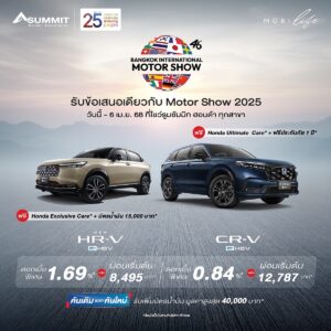 ซัมมิท ฮอนด้า ออโต้โมบิลจัดเก็บสิทธิพิเศษ ให้ลูกค้าได้คุ้มค่า 3 ถัดไปก่อนจองรถยนต์ ฮอนด้า HR-V e:HEV ที่งานบางกอกออเดลอร์ในโชว์รูม ครั้งที่ 46