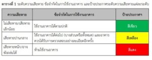 “ระดับ ‘สีเขียว’ หมายถึงมีเพียงความเสียหายเล็กน้อยที่ไม่กระทบต่อการใช้งาน เช่น รอยร้าวบางจุดที่ผนัง หรือพื้นโก่งงอเล็กน้อย และยังไม่พบร่องรอยของความเสียหายที่โครงสร้างหลัก อย่าง เสา คาน หรือจุดต่อระหว่างองค์ประกอบหลักของอาคาร ทั้งนี้ อาคารในระดับ ‘สีเขียว’ สามารถใช้งานได้ตามปกติหลังจากเคลียร์เศษวัสดุหรือผนังที่หลุดร่อนแล้ว แตกต่างจากอาคารในระดับ ‘สีเหลือง’ ที่มีรอยแตกร้าวชัดเจนในส่วนของโครงสร้าง หรือมีชิ้นส่วนอาคารที่อาจร่วงหล่นใส่ผู้ใช้งาน ซึ่งจำเป็นต้องมีการห้ามใช้งานบางส่วนและต้องตรวจสอบเชิงลึกเพิ่มเติม”