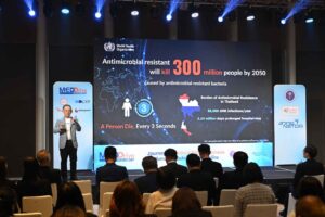 (2 เมษายน 2568) ณ ห้องคริสตัลบอกซ์ ชั้น 19 ศูนย์การค้าเกษรพลาซ่า กรุงเทพฯ – กระทรวงการอุดมศึกษา วิทยาศาสตร์ วิจัยและนวัตกรรม (อว.) โดยสำนักงานพัฒนาวิทยาศาสตร์และเทคโนโลยีแห่งชาติ (สวทช.) ร่วมกับ หน่วยบริหารและจัดการทุนด้านการเพิ่มความสามารถในการแข่งขันของประเทศ (บพข.) จัดงาน “MED Drive Demo Day : Journey to Medical Billion Business สัมมนาเส้นทางธุรกิจพันล้านเครื่องมือแพทย์ไทย” ภายใต้โครงการยกระดับความสามารถในการแข่งขันของผู้ผลิตเครื่องมือแพทย์ไทยเข้าสู่ตลาดทั้งในและต่างประเทศ (MED Drive) เพื่อเป็นเวทีนำเสนอผลงานเครื่องมือแพทย์สู่อนาคตของ 5 ผู้ผลิตเครื่องมือแพทย์ไทยที่เข้าร่วมโครงการ ซึ่งมีศักยภาพในการเพิ่มยอดขายระดับร้อยล้านสู่หลักพันล้านได้ภายใน 5 ปี ครอบคลุมผลิตภัณฑ์ ได้แก่ กลุ่มน้ำยาฆ่าเชื้อ กลุ่มรักษาแผล กลุ่มวัสดุฝังใน กลุ่มอุปกรณ์ล้างไต และกลุ่มทันตกรรม ด้วยกลไกการสนับสนุนด้านวิทยาศาสตร์ เทคโนโลยีและนวัตกรรม (วทน.) รวมถึงผู้เชี่ยวชาญที่เกี่ยวข้อง พร้อมเชื่อมโยงสู่ตลาดทั้งในประเทศและระดับโลก หวังสร้างโปรดักส์แชมเปี้ยนให้อุตสาหกรรมเครื่องมือแพทย์ไทย นอกจากนี้ งาน Demo Day ยังเป็นเวทีสร้างเครือข่ายกลุ่มผู้ประกอบการเครื่องมือแพทย์ไทยเพื่อร่วมกันจุดประกายแนวคิดใหม่ ๆ และผลักดันให้ไทยก้าวสู่ผู้นำในอุตสาหกรรมนี้บนเวทีโลก โดยมีพันธมิตรจากภาครัฐ ภาคเอกชน และภาคการศึกษา ตลอดจนผู้ประกอบการกว่า 200 คนเข้าร่วมงาน
