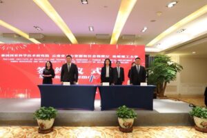 กระทรวงการอุดมศึกษา วิทยาศาสตร์ วิจัยและนวัตกรรม (อว.) โดย สถาบันวิจัยวิทยาศาสตร์และเทคโนโลยีแห่งประเทศไทย (วว.) ร่วมพิธีลงนามบันทึกความเข้าใจระหว่าง 3 หน่วยงาน ได้แก่ วว. กับ กรมทรัพยากรมนุษย์และประกันสังคม มณฑลยูนนาน (Yunnan Provincial Department of Human Resources and Social Security) และ มหาวิทยาลัยวิทยาศาสตร์และเทคโนโลยีคุนหมิง (Kunming University of Science and Technology – KUST) เมื่อวันที่ 16 พ.ค. ที่โรงแรม Zhong Wei นครคุนหมิง มณฑลยูนนาน สาธารณรัฐประชาชนจีน