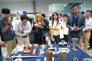 ผู้เข้าร่วมยังได้เยี่ยมชมห้องปฏิบัติการวิจัยแสงซินโครตรอน และห้องปฏิบัติการเทคนิคและวิศวกรรมของสถาบันฯ เพื่อเรียนรู้กระบวนการวิจัยและพัฒนาอย่างใกล้ชิด หนึ่งในไฮไลต์สำคัญของงานคือการนำเสนอความก้าวหน้าของโครงการพัฒนาเครื่องต้นแบบสำหรับการเคลือบฟิล์ม DLC บนบรรจุภัณฑ์อาหารสมัยใหม่ ซึ่งมีศักยภาพในการยืดอายุการเก็บรักษาอาหารสด ลดการใช้พลาสติกแบบใช้ครั้งเดียว และลดการใช้สารเคมีที่เป็นอันตรายต่อสิ่งแวดล้อม ทั้งยังช่วยลดการปล่อยก๊าซเรือนกระจกในกระบวนการผลิต นอกจากนี้ การจัดเวิร์กชอปยังเป็นเวทีสำคัญในการสร้างเครือข่ายความร่วมมือระหว่างภาคอุตสาหกรรม นักวิจัย และสถาบันการศึกษา เพื่อร่วมกันผลักดันการพัฒนาเทคโนโลยี DLC ให้เกิดการใช้งานจริงในระดับอุตสาหกรรม และต่อยอดสู่การพัฒนาเทคโนโลยีขั้นสูงของประเทศในอนาคต