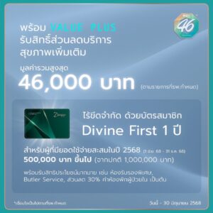 2. ไร้ขีดจำกัด ด้วยแพ็กเกจสุขภาพราคาเดียวทั้งเครือ ราคา 4,600 บาท Value Plus รับสิทธิส่วนลดบริการสุขภาพเพิ่มเติม มูลค่ารวมสูงสุดถึง 46,000 บาท ตามรายการที่กำหนด