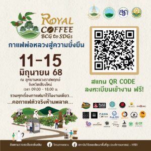 มูลนิธิโครงการหลวง ร่วมกับ สถาบันวิจัยและพัฒนาพื้นที่สูง (องค์การมหาชน) กรมวิชาการเกษตร และสำนักงานพัฒนาการวิจัยการเกษตร (องค์การมหาชน) กำหนดจัดงาน“กาแฟพ่อหลวงสู่ความยั่งยืน จาก BCG สู่ SDGs” ซึ่งจะจัดขึ้นระหว่างวันที่ 11 – 15 มิ.ย. ที่อุทยานหลวงราชพฤกษ์ จ.เชียงใหม่