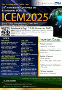ขอเชิญส่งบทความวิจัยเข้าร่วมงานประชุมวิชาการนานาชาติด้านวัสดุเพื่อสิ่งแวดล้อม ครั้งที่ 16 : ICEM2025