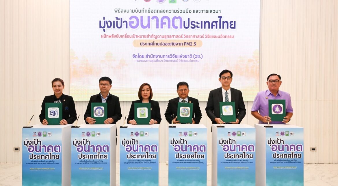 ซึ่งการลงนามบันทึกข้อตกลง “มุ่งเป้าอนาคตไทยเพื่ออากาศสะอาด” มีเป้าหมายเพื่อบูรณาการข้อมูลวิทยาศาสตร์และนวัตกรรมในการแก้ปัญหา PM2.5 ในจังหวัดลำปางและจังหวัดตาก เชื่อมโยงผลงานวิจัยของ วช. กับความต้องการในพื้นที่ และร่วมจัดกิจกรรมที่เกี่ยวข้อง หน่วยงานในพื้นที่เข้าร่วมลงนามเพื่อขับเคลื่อนงานอย่างเป็นรูปธรรม โดยมุ่งสร้างประโยชน์สูงสุดต่อประชาชนและประเทศ