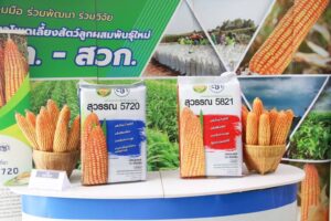ข้าวโพดสุวรรณ 5720/5821 – ข้าวโพดเลี้ยงสัตว์สายพันธุ์ใหม่ทางเลือกแทนนาปรัง เพิ่มรายได้ 1,000 –2,000 บาท/ไร่ ปัจจุบันผลิตเมล็ดพันธุ์สุวรรณ 5720 ขายให้แก่เกษตรกรปีละประมาณ 20 ตัน สร้างรายได้ให้เกษตรกรประมาณ 78 ล้านบาท/ปี