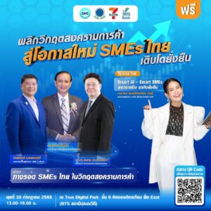 สมาคมผู้สื่อข่าวส่งเสริมเอสเอ็มอีไทย ร่วมกับ สมาคมการค้าปลีกและเอสเอ็มอีทุนไทย และภาคีเครือข่าย จัดงานสัมมนาหัวข้อ “พลิกวิกฤตสงครามการค้า สู่โอกาสใหม่ SMEs ไทยเติบโตอย่างยั่งยืน” เพื่อให้ผู้ประกอบการไทยเข้าใจแนวโน้มธุรกิจในช่วงวิกฤตและหาโอกาสเติบโตอย่างมั่นคงในยุคดิจิทัล โดยจะพูดถึงกลยุทธ์รับมือกับความท้าทายจากสงครามการค้า รวมถึงเทคโนโลยี AI ที่ช่วยสร้างการเติบโตทางธุรกิจอย่างยั่งยืน ในวันพุธที่ 30 ก.ค. เวลา 13.00-16.00 น. ณ True Digital Park ชั้น 6 ห้องออดิทอเรียม ฝั่ง East (BTS สถานีปุณณวิถี)