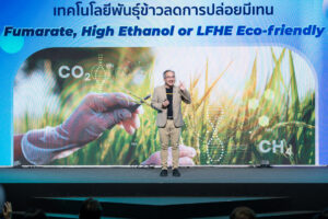 “การปลูกข้าว” เป็นกิจกรรมที่ปล่อยก๊าซเรือนกระจกมากที่สุดในภาคการเกษตร ที่ผ่านมาประเทศไทยส่งเสริม “การทำนาแบบเปียกสลับแห้ง” เพื่อลดการปล่อยก๊าซมีเทนจากนาข้าว แต่วิธีนี้มีข้อจำกัดทำได้เฉพาะนาชลประทาน การพัฒนา “พันธุ์ข้าวลดการปล่อยมีเทน” จึงเป็นแนวทางที่มีศักยภาพสูง เพราะใช้ได้ทั้งนาน้ำฝนและนาชลประทาน พันธุ์ข้าวลดการปล่อยมีเทนมีคุณสมบัติสำคัญคือ รากผลิตเอทานอลปริมาณมาก และผลิตฟูมาเรตน้อยลง โดยฟูมาเรตเป็นแหล่งอาหารของแบคทีเรียที่สร้างมีเทน จึงทำให้แบคทีเรียเจริญเติบโตได้ไม่ดี และปล่อยมีเทนน้อยกว่าข้าวปกติ ปัจจุบันประเทศจีนพัฒนาพันธุ์ข้าวลดการปล่อยมีเทนจากข้าวสายพันธุ์ “Heijing (เฮจิง)” สามารถลดการปล่อยก๊าซมีเทนได้สูงถึงร้อยละ 70 และให้ผลผลิตสูงถึง 1.4 ตันต่อไร่ทั้งนี้การผลิตข้าวลดการปล่อยมีเทนยังมีจุดเด่น คือ ต้นทุนการผลิตต่ำ ขยายผลสู่เกษตรกรได้จริง ตอบโจทย์เชิงนโยบายและการตลาดไปพร้อมกัน ด้วยการแสดงข้อมูลสิ่งแวดล้อมสำหรับตลาดพรีเมียม