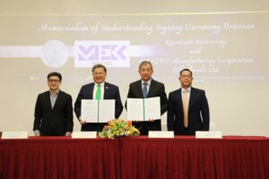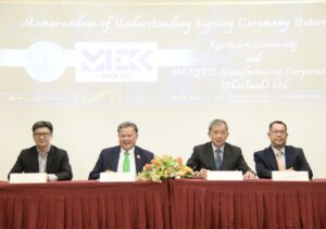 คุณโกวิทย์ จันทร์วัฒนากุล ผู้จัดการทั่วไป บริษัท เม็กเท็ค แมนูแฟ็คเจอริ่ง คอร์ปอเรชั่น (ประเทศไทย) จำกัด กล่าวว่า “ความร่วมมือกับมหาวิทยาลัยเกษตรศาสตร์ทำให้เราเชื่อมต่อ ‘เทคโนโลยีจริง’ เข้ากับ ‘การเรียนรู้จริง’ ได้อย่างเป็นรูปธรรม เราตั้งใจนำองค์ความรู้จากโรงงานของเรา มาร่วมพัฒนา AR/VR/MR สำหรับฝึกทักษะหน้างาน สร้างแพลตฟอร์ม Predictive Maintenance ที่ใช้ข้อมูลจริง และขับเคลื่อนโครงการ ประสิทธิภาพพลังงานเพื่อมุ่งสู่ Carbon Neutrality ให้เกิดผลลัพธ์ที่วัดได้ ทั้งกับนิสิต คนทำงาน และอุตสาหกรรมโดยรวม” “เราเชื่อว่า MEKTEC Classroom จะเป็นจุดเชื่อมต่อสำคัญระหว่างคน เทคโนโลยี และการใช้งานจริง ช่วยย่นระยะ ‘จากห้องเรียนสู่ไลน์ผลิต’ และยกระดับมาตรฐานวิศวกรรมของไทยให้แข่งขันได้ในระดับสากล”