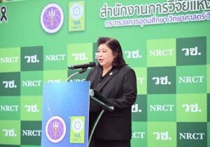 ดร.วิภารัตน์ ดีอ่อง ผู้อำนวยการสำนักงานการวิจัยแห่งชาติ กล่าวว่า วช. ตระหนักถึงความสำคัญของการนำองค์ความรู้ งานวิจัย และนวัตกรรม มาประยุกต์ใช้เพื่อรับมือกับสถานการณ์วิกฤตของประเทศ โดยนวัตกรรมเท้าเทียมไดนามิกส์ (sPace) ซึ่งเป็นผลงานวิจัยของนักวิจัยไทยที่มีคุณภาพสูงตามมาตรฐานสากล สามารถนำไปใช้ช่วยเหลือและฟื้นฟูสมรรถภาพกำลังพลทหารที่ได้รับผลกระทบจากเหตุการณ์ชายแดนได้อย่างเป็นรูปธรรม พร้อมนี้ได้มอบเงินบริจาคบรรเทาความเดือดร้อนของผู้ประสบภัยพิบัติในพื้นที่ภาคใต้ เพื่อสนับสนุนการดูแลรักษาผู้ได้รับผลกระทบ และเสริมสร้างความพร้อมของระบบสาธารณสุขในพื้นที่