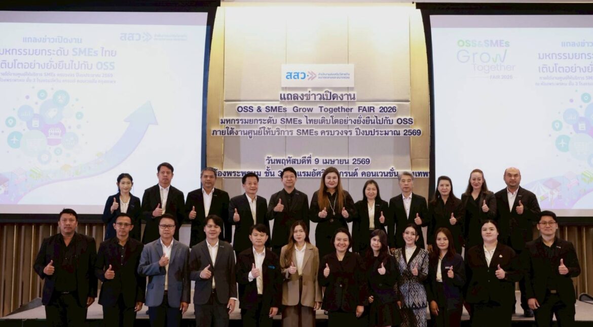กรุงเทพฯ (9 เมษายน 2569) – สำนักงานส่งเสริมวิสาหกิจขนาดกลางและขนาดย่อม (สสว.) เปิดตัวงาน “OSS & SMEs GROW TOGETHER FAIR 2026” มหกรรมยกระดับ SMEs ไทยเติบโตอย่างยั่งยืนไปกับ OSS มุ่งเน้นการสร้างระบบนิเวศทางธุรกิจที่แข็งแกร่ง ทลายอุปสรรคด้านต้นทุนและการแข่งขันที่รุนแรง เพื่อเพิ่มขีดความสามารถให้ผู้ประกอบการเข้าถึงโอกาสทางการตลาดและเครือข่ายพันธมิตรในยุคเศรษฐกิจใหม่ ณ โรงแรมอัศวิน แกรนด์ คอนเวนชัน กรุงเทพมหานคร