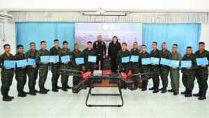 ถัดมาเป็นพิธีมอบประกาศนียบัตรแก่ผู้ผ่านการฝึกอบรมหลักสูตรการใช้อากาศยานไร้คนขับเชิงยุทธวิธี ซึ่งถือเป็นอีกหนึ่งผลลัพธ์สำคัญของความร่วมมือในครั้งนี้ สะท้อนถึงความสำเร็จในการพัฒนาศักยภาพกำลังคนให้มีความรู้ ความสามารถ และทักษะที่สอดคล้องกับการใช้งานจริงในภารกิจด้านความมั่นคงและการพัฒนาประเทศ โดยผู้เข้ารับการอบรมสามารถนำองค์ความรู้ที่ได้รับไปประยุกต์ใช้ได้อย่างมีประสิทธิภาพและเกิดประโยชน์สูงสุด