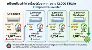 “การเลือกซื้อเครื่องปรับอากาศ ไม่ควรดูแค่ฉลากประหยัดไฟเบอร์ 5 เท่านั้น แต่ควรดูที่ค่า SEER (Seasonal Energy Efficiency Ratio : อัตราส่วนประสิทธิภาพพลังงานตามฤดูกาล) ด้วย ซึ่งค่า SEER ยิ่งมีค่าสูงยิ่งสะท้อนถึงความคุ้มค่าในการใช้ไฟฟ้า ตัวอย่างเช่น เมื่อเปรียบเทียบแอร์ขนาด 12,000 BTU/hr เท่ากัน เราพบว่าเครื่องแบบ Fix Speed ฉลากเบอร์ 5 ระดับ 1 ดาว ที่มีค่า SEER 13.82 BTU/W-hr มีค่าไฟเฉลี่ยต่อปี 12,677 บาทต่อปี ขณะที่เครื่อง Inverter ฉลากเบอร์ 5 ระดับ 1 ดาว ค่า SEER 18 BTU/W-hr มีค่าไฟลดลงเหลือ 9,733 บาทต่อปี รุ่น 2 ดาว ค่า SEER 20 BTU/W-hr มีค่าไฟ 8,734 บาทต่อปี และรุ่น 3 ดาว ค่า SEER 23 BTU/W-hr มีค่าไฟเพียง 7,617 บาทต่อปี ข้อมูลนี้ชี้ชัดเลยว่า แม้จะเป็นแอร์ขนาดเท่ากัน แต่หากเลือกเทคโนโลยีและค่าประสิทธิภาพพลังงานที่ดีกว่า ก็สามารถช่วยประหยัดค่าไฟได้หลายพันบาทต่อปี ดังนั้น การซื้อแอร์จึงไม่ควรมองแค่ราคาตอนซื้อ แต่ต้องมองถึงค่าใช้จ่ายระยะยาวควบคู่กันไปด้วย ส่วนใครที่ยังไม่มีแผนจะซื้อเครื่องใหม่ การหมั่นล้างทำความสะอาดแผ่นกรองฝุ่น หรือล้างแอร์ทุก 6 เดือน ก็เป็นวิธีที่ช่วยรักษาประสิทธิภาพของแอร์และยืดอายุการใช้งานเครื่องได้เป็นอย่างดี” ดร.วันชัย กล่าว